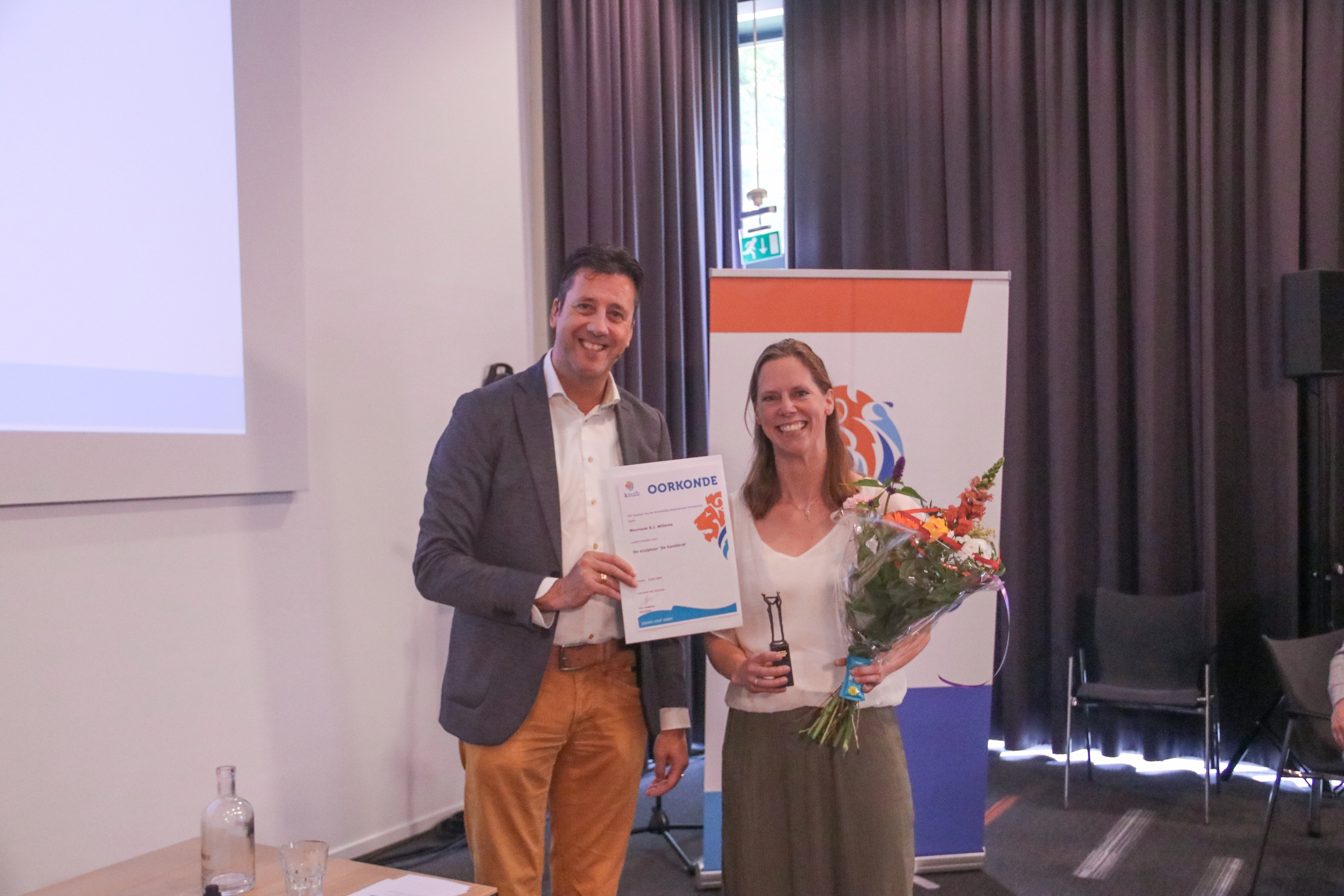 Na alle formele stemmingen en besluiten mocht Hayke Veldman aan het eind van de vergadering nog een drietal prijzen uitreiken. Na ruim 45 (!) jaar vrijwilligerswerk voor verschillende verenigingen te hebben gedaan als trainer, scheidsrechter en bestuurder, verdiende Reijer Paerel van ZC De Vuursche de KNZB Vrijwilligersprijs als geen ander.