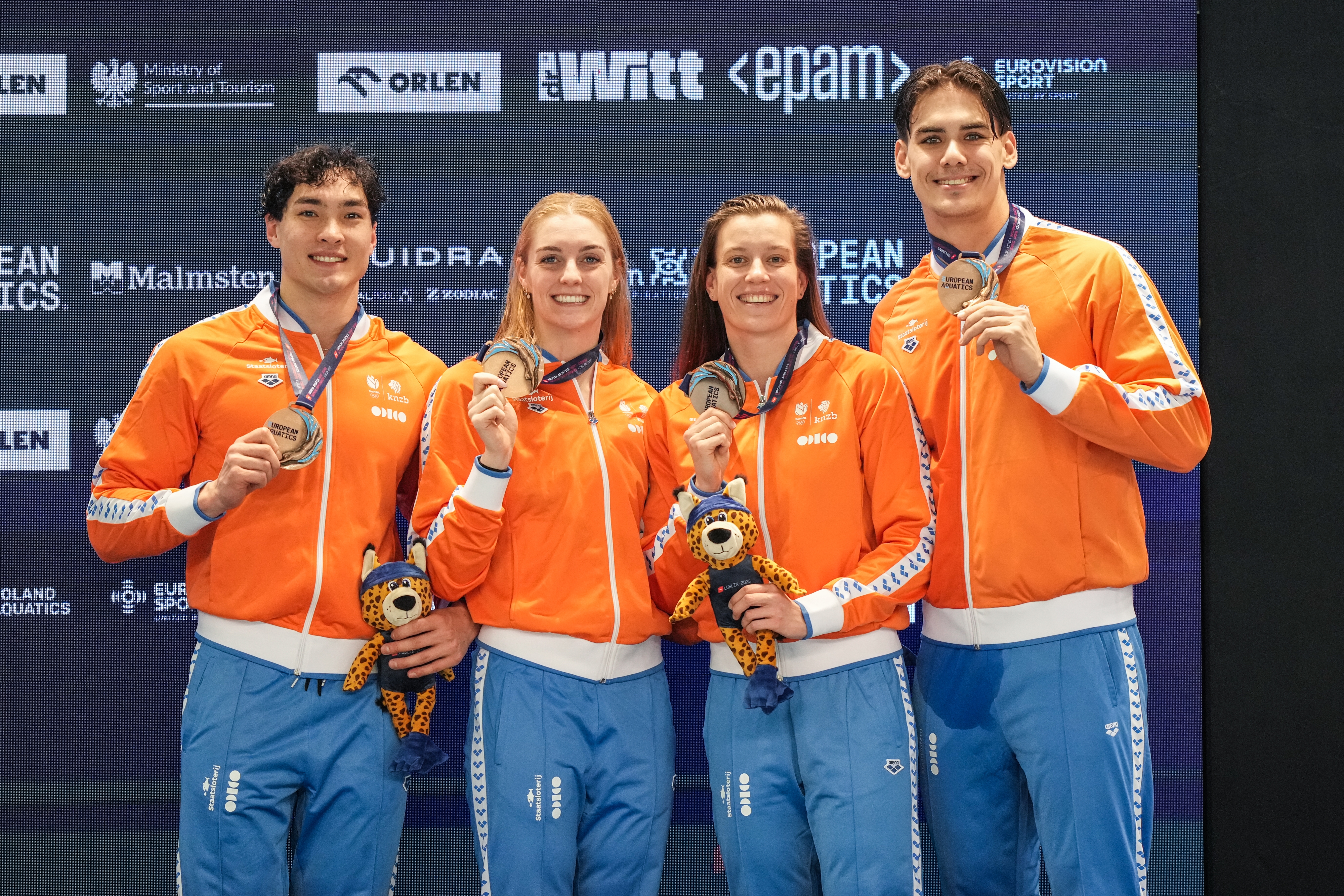 Brons: Estafette vrij mixed - Brandon van den Berg, Sean Niewold, Marrit Steenbergen en Valerie van Roon