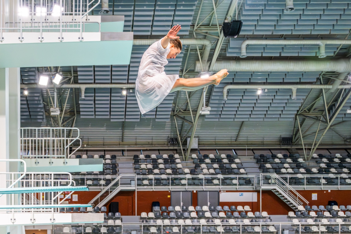 “Dat heb ik wel geleerd van het schoonspringen. Ik heb de drive om mezelf continu te blijven verbeteren, maar soms moet je zeggen: voor vandaag is het goed genoeg. Anders raakt de verbinding met je doel weg.” Dat gezegd hebbende, is het tijd om te gaan. Op naar het zwembad in Eindhoven.