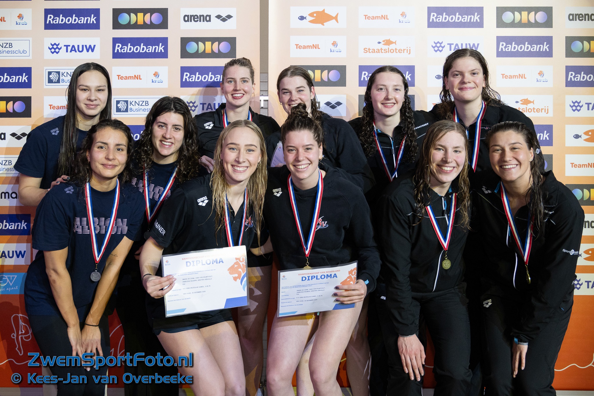 De dag werd afgesloten met de estafettes waar Albion bij de mannen een kampioenschapsrecord zwommen en de vrouwen van PSV, na winst gister op de 4x200m vrije slag, ook zegevierden op de 100 vrij. Bekijk via deze link alle resultaten van de tweede dag en op deze pagina de gemaakte foto's.