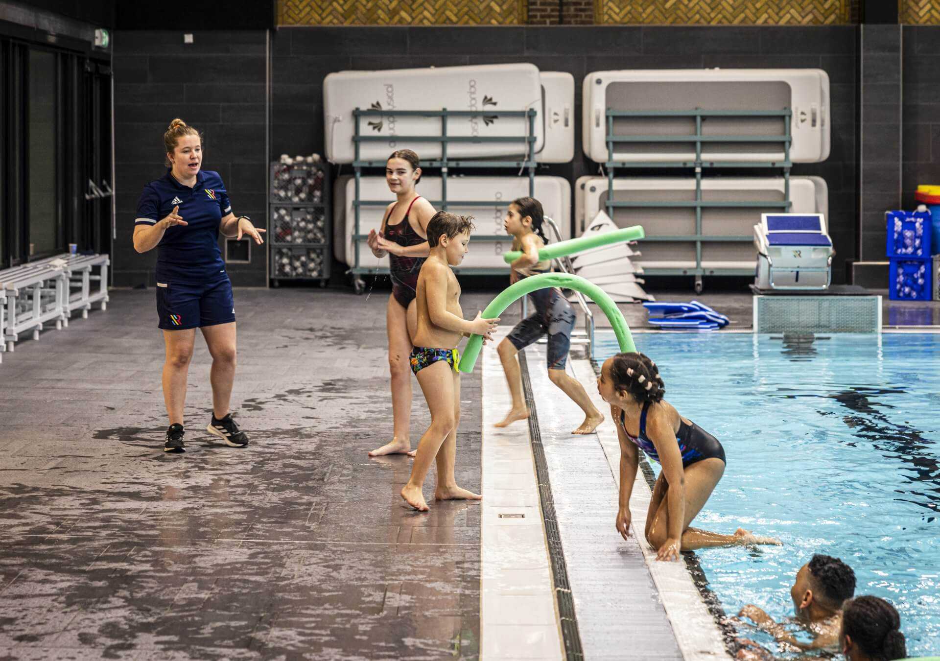 Anouque: “We komen in zwembaden in alle delen van de stad. We nodigen de kinderen die het leuk vinden uit om een proefles te volgen bij een vereniging. Omdat wij die trainingen ook geven bij de verenigingen, zien ze ons daar ook weer terug. Dat geeft vertrouwen.”