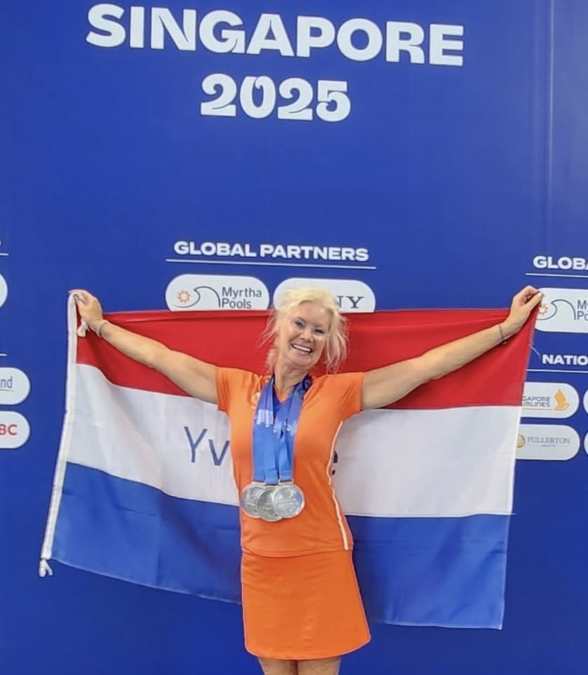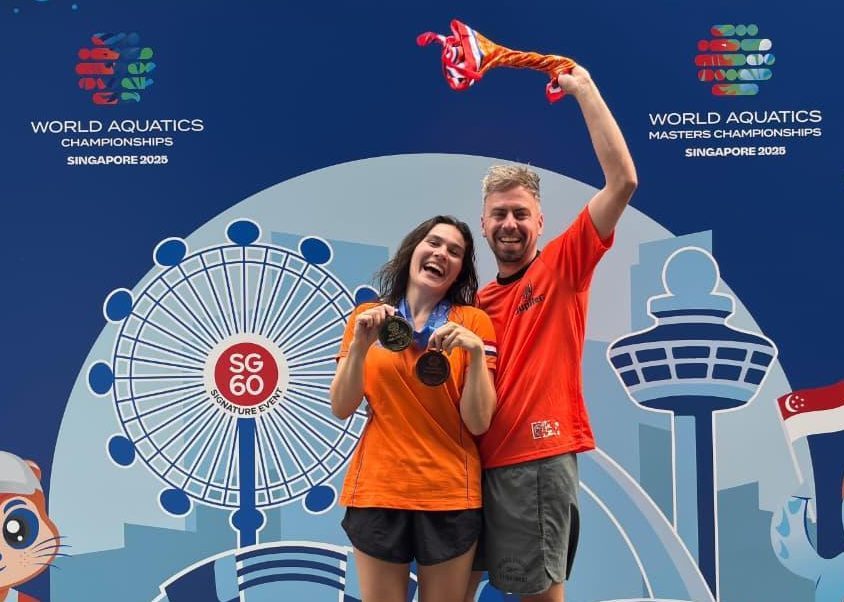 ‘’Dat houdt in om zes keer per week te schoonspringen, twee keer per week te fitnessen en wekelijks te padellen. De belangrijkste wedstrijden zijn het NK en EK, tussenin volgen er nog andere wedstrijden binnen Europa. Ondanks dat de kalender voor volgend jaar nog niet volledig bekend is, doe ik in juni 2026 in ieder geval weer mee in Kroatië.’’