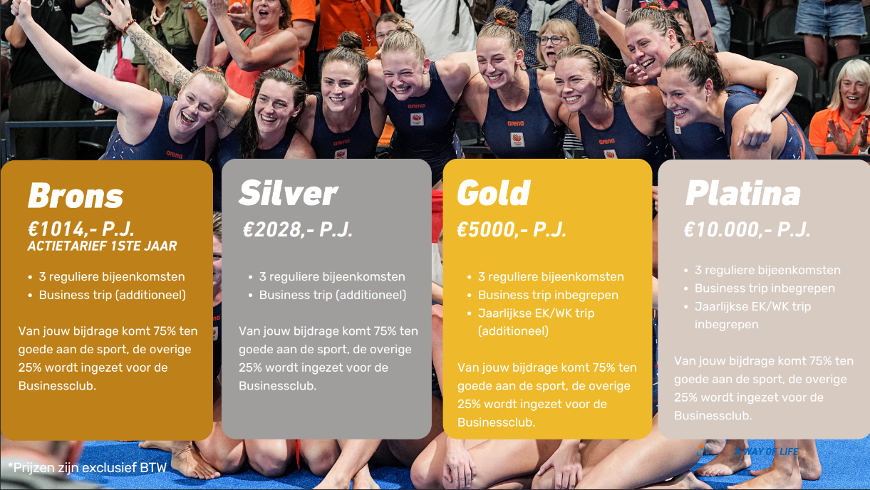 - Voorrang bij afname hospitality bij grote zwemsport evenementen