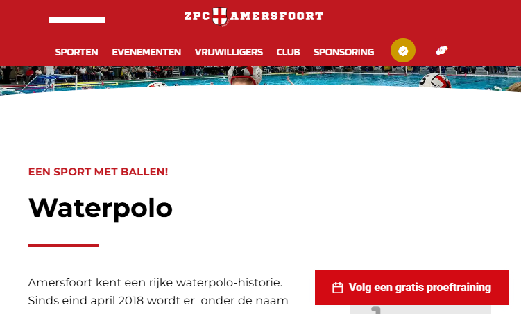 Geïnteresseerden in een proeftraining belanden vaak op de website van de vereniging. Je wilt dat zij meteen vinden wanneer, waar en hoe ze een proeftraining kunnen volgen. Dat kan gemakkelijk via de ikwilzwemmen.nl-widget. Via een opvallende knop schrijven geïnteresseerden zich op de website van de vereniging in voor een gratis proeftraining. Enkel het aanbod dat jouw vereniging op ikwilzwemmen.nl heeft geplaatst wordt getoond. De knop designen we uiteraard in de kleuren van jouw website. Zie ook onderstaand voorbeeld van ZPC Amersfoort.